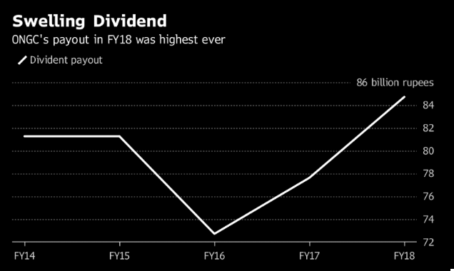 ONGC最大的股東總理Narendra Modi的政府一直在攻打包括印度最大的能源探險家在內(nèi)的國有公司,以彌補(bǔ)其財(cái)政赤字。在這個公司被命令增加投資以幫助削減美國原油進(jìn)口量的時候,這使該公司的資金枯竭。ONGC上個財(cái)政年度支付了4260億盧比作為政府的股息,并購買其在煉油廠的股份。