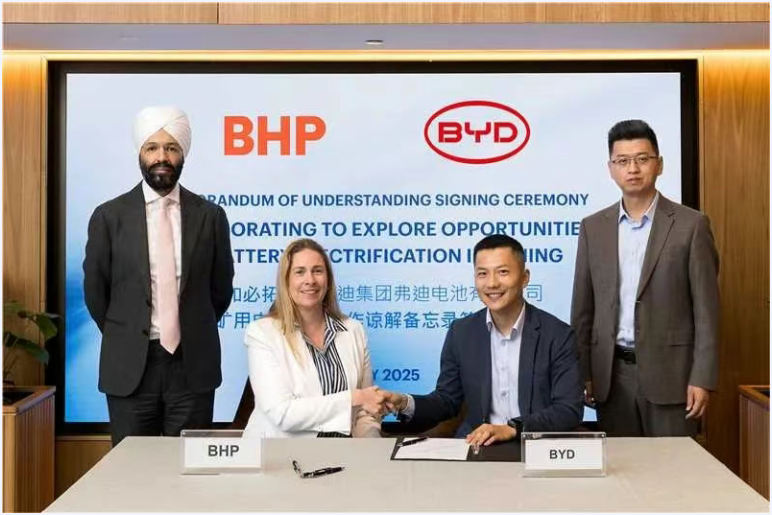 “必和必拓期待通過與比亞迪這樣的行業(yè)領軍企業(yè)合作,積極探尋關鍵解決方案,努力為資源行業(yè)打造更高效、更可持續(xù)的未來發(fā)展格局。”