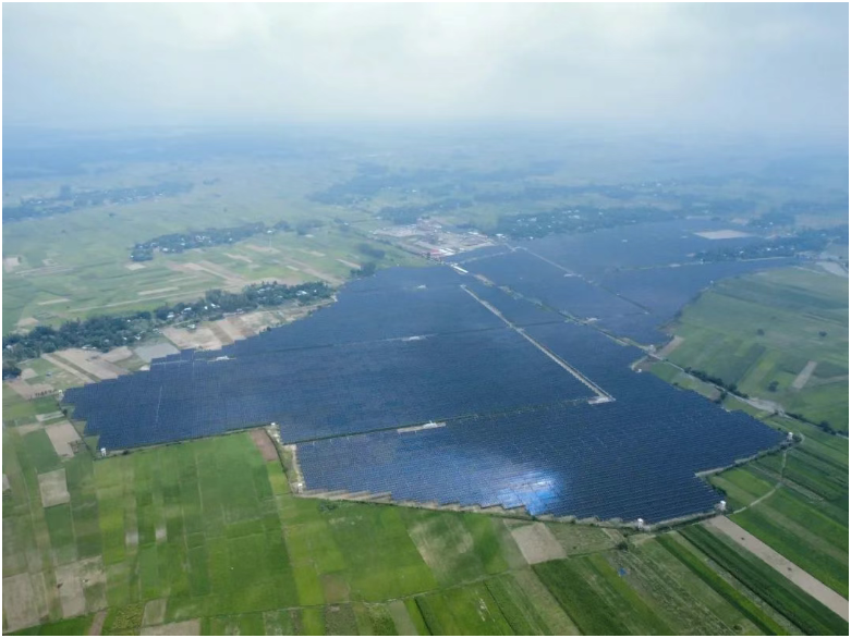 項目位于孟加拉國北部拉杰沙希區(qū),博多河(恒河)下游河道附近,占地面積約195英畝。項目直流側(cè)裝機容量約79兆瓦峰,交流側(cè)裝機容量72.6兆瓦,新建一座132千伏升壓站,兩回132千伏送出線路變電站。