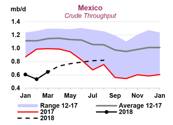 AMLO還表示,他將削減甚至終止原油出口,轉移國內煉油用品。墨西哥老化的煉油廠的運營方式低于產能,墨西哥越來越依賴來自美國的進口燃料。