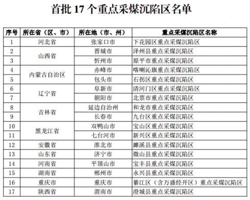 據(jù)悉,發(fā)改委于2017年7月底發(fā)布了首批重點采煤沉陷區(qū)綜合治理工程實施方案的復(fù)函,共17個重點采煤沉陷區(qū)工程實施方案通過評估論證。