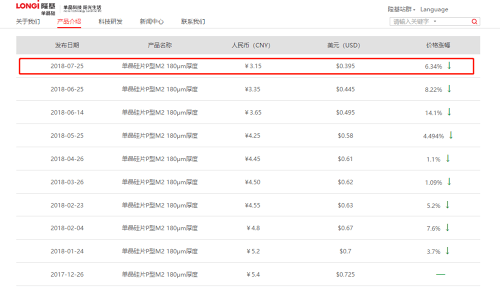 年內(nèi)第九次調(diào)價(jià)!隆基單晶硅片下調(diào)6.34%