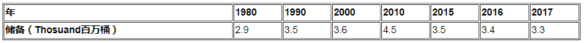 表27:自1980年以來(lái)在桶中的埃及探明石油儲(chǔ)量