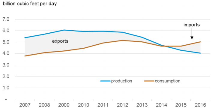 圖16:埃及天然氣產(chǎn)量,消費(fèi)量,凈出口量,凈進(jìn)口量(EIA,2018)