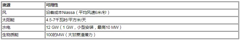 莫桑比克擁有相當(dāng)??大的能源資源,估計(jì)水電潛力為12,000兆瓦,天然氣儲(chǔ)量(估計(jì)達(dá)到7000億立方米)和巨大的煤炭儲(chǔ)量(估計(jì)達(dá)到1.4億TJ),有可能產(chǎn)生約。分別為500兆瓦和5,000兆瓦。