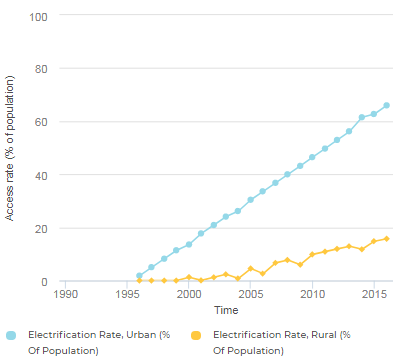 電力供應(yīng)極低; 只有6%的農(nóng)村家庭與國(guó)家電網(wǎng)相連。