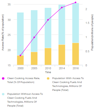 在能源獲取方面,萊索托被認(rèn)為是非洲最低的國(guó)家之一。雖然自2000年代初以來(lái)有明顯的年度發(fā)展,但該國(guó)在2015/16年度達(dá)到最大值,與其他國(guó)家相比,仍然相對(duì)較小。