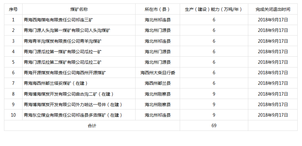 青海省2018年煤炭行業(yè)化解過剩產(chǎn)能煤礦名單