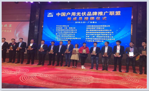 2018 年 3 月 23 日,中國戶用光伏巡回展佛山論壇隆重召開,佛山及東莞發(fā) 改局、經(jīng)信委、技術(shù)局、行業(yè)協(xié)會、認(rèn)證機(jī)構(gòu)、聯(lián)盟成員、參展商、佛山 及全國各地經(jīng)銷商代表、EPC 代表等 200 多人出席會議,共話分布式尤其是 家庭戶用光伏商業(yè)模式的創(chuàng)新發(fā)展。同時(shí),舉行了隆重的中國戶用光伏品 牌推廣聯(lián)盟第三批新成員授牌儀式以及 2018 中國戶用光伏商業(yè)模式創(chuàng)新獎 頒獎典禮。