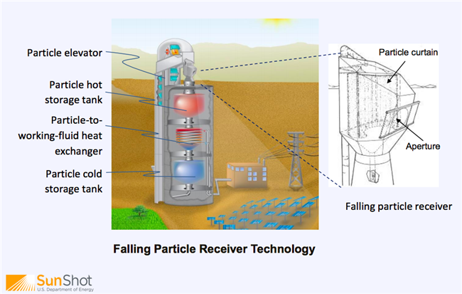 目前,研究人員已經(jīng)研究了多種類(lèi)型的粒子,而在此過(guò)程中,沙子的低成本優(yōu)勢(shì)得以顯現(xiàn)。當(dāng)系統(tǒng)輸出功率為5MW時(shí),這種粒子吸熱器將需要2000噸沙子進(jìn)行循環(huán)工作。