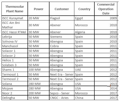 表:Therminol®VP-1導(dǎo)熱油業(yè)績(jī)表(光熱發(fā)電CSP行業(yè))