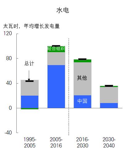 報告中提到,水電增長(年均1.3%,61太瓦時每年)在發(fā)展中經(jīng)濟中十分普遍。盡管比起過去幾年的快速增長明顯放緩,中國在增長中占比最大(16太瓦時每年);此外是南美和中美地區(qū)(13太瓦時每年)以及非洲(11太瓦時每年)。