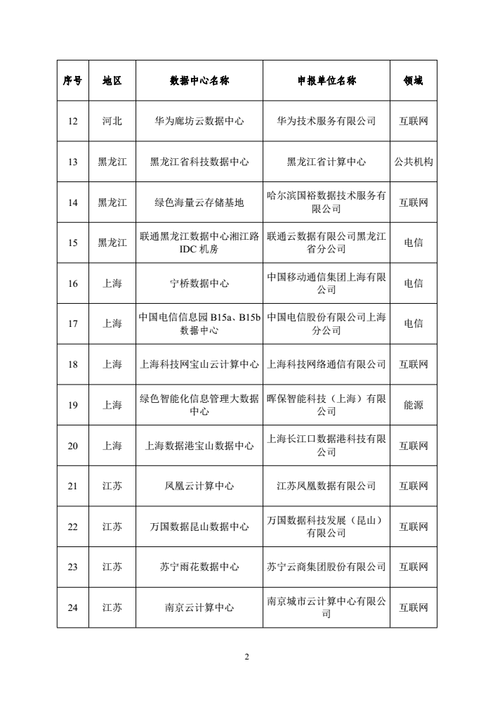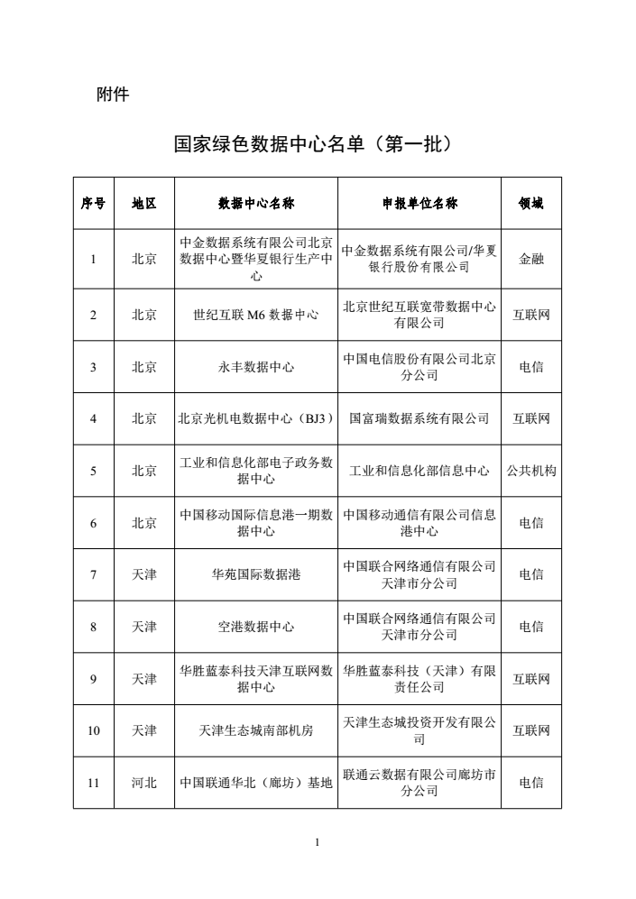 附件:國家綠色數(shù)據(jù)中心名單(第一批)