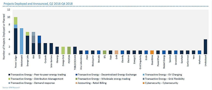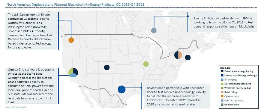 在美國,有關(guān)區(qū)塊鏈應(yīng)用能源領(lǐng)域的諸多嘗試都鮮少涉及能源設(shè)施領(lǐng)域。GTM Research預(yù)測,那些在2017年開始對區(qū)塊鏈技術(shù)開展調(diào)查的一些能源設(shè)施公司將在2018年規(guī)劃甚至部署相應(yīng)的試點項目。