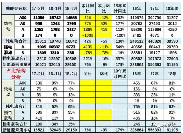 從細分領(lǐng)域看,純電動A00級車在純電動車型銷量中占比77%,是絕對主力,不過從環(huán)比情況看,2月A00級車比1月銷量下滑了13%。而純電動A級車本月同比增速達到136%,環(huán)比1月也增長了41%。崔東樹分析認為,2月A00級車占比較大,是因為2月A00級車面臨補貼調(diào)整仍有搶裝的動力。不過隨著新能源補貼對新能源汽車里程的調(diào)整,入門級A00級電動車面臨補貼大幅降低的危險。