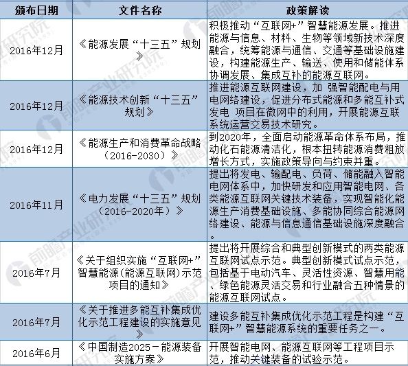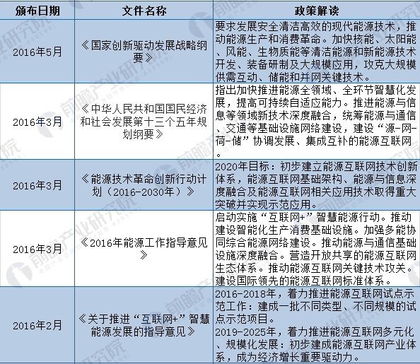 2015年7月,國務院印發(fā)《關于積極推進“互聯(lián)網(wǎng)+”行動的指導意見》,用專門篇章闡述“互聯(lián)網(wǎng)+智慧能源”,描繪了能源互聯(lián)網(wǎng)發(fā)展路線圖。此后,國務院以及各部門陸續(xù)出臺了數(shù)部關于促進能源互聯(lián)網(wǎng)行業(yè)發(fā)展的政策: