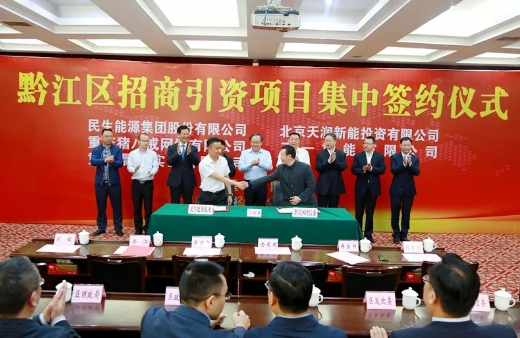 4月27日,黔江區(qū)在會議中心舉行招商引資項目集中簽約儀式(如圖),集中簽訂5個合作協(xié)議,協(xié)議總投資額52.3億元。